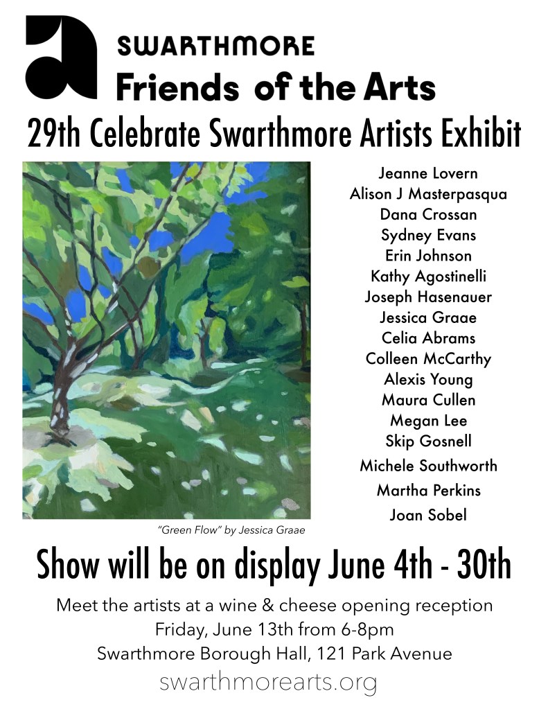 For information about Swarthmore Friends of the Arts or to submit a request for your own show, visit www.swarthmorearts.org or contact Martha Perkins, martha.perkins@gmail.com.