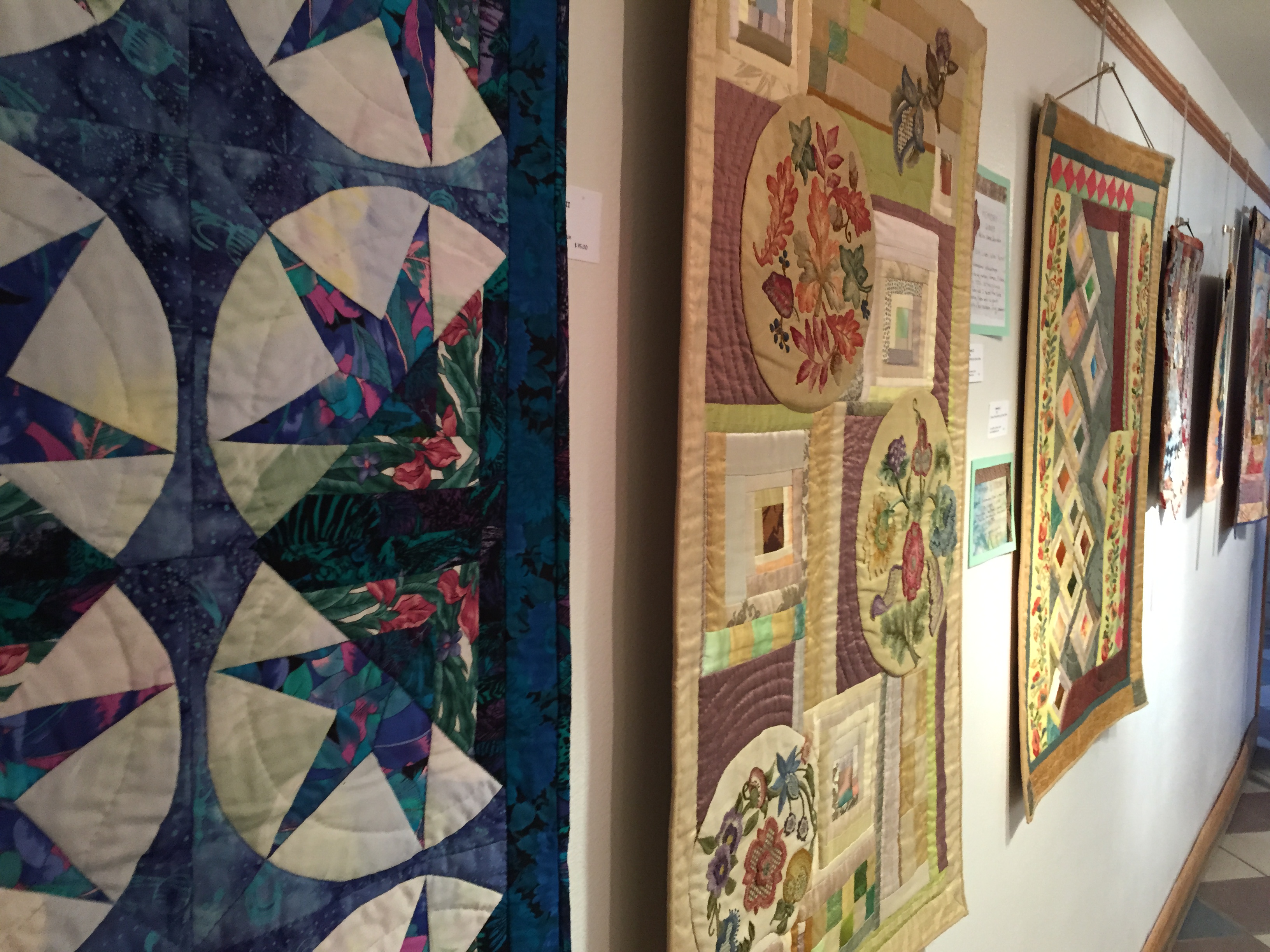 Ms. Larkin has exhibited locally in a number of area shows and juried exhibits, including the Community Arts Center in Wallingford, and has won a number of prizes for her art quilts and her jewelry.  She has been a member of Main Line Quilters since 1987, and a participant in the Advanced Jewelry Studio Workshop at the Community Arts Center since 2000.