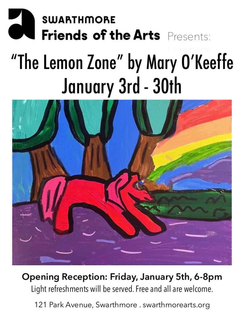 For information about Swarthmore Friends of the Arts or to submit a request for your own show, visit www.swarthmorearts.org or contact Martha Perkins, martha.perkins@gmail.com.