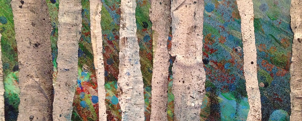 The detail in Ms. Grentzenberg’s art pulls the viewer into a created world, at times surreal, whimsical, and finally colorful. Her latest works have returned to mixed media, combining found materials and working in abstract designs.